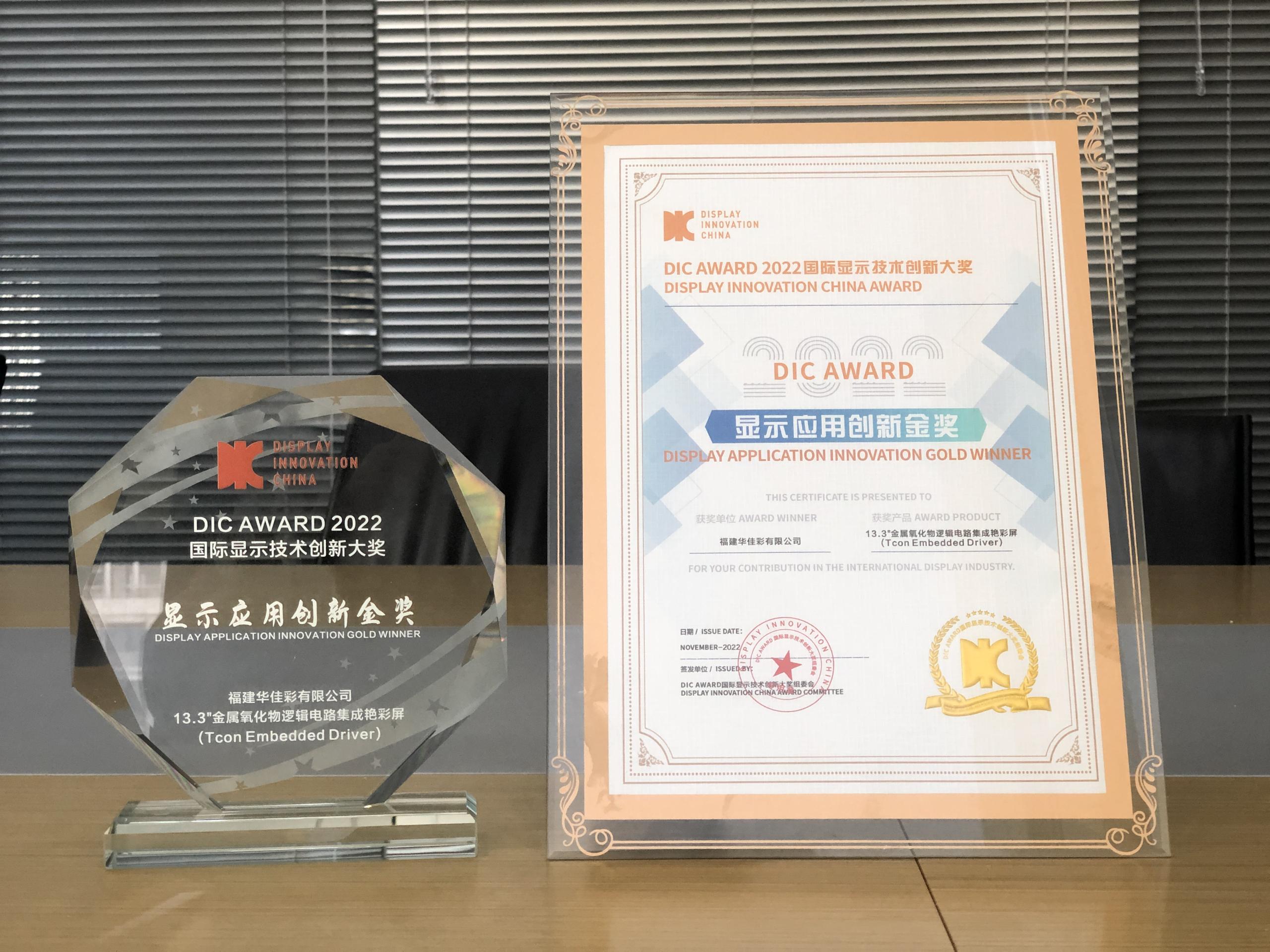 DIC AWARD 2022 DISPLAY APPLICATION INNOVATION GLOD WINNER(13.3 "metal oxide logic circuit integrated bright color display)